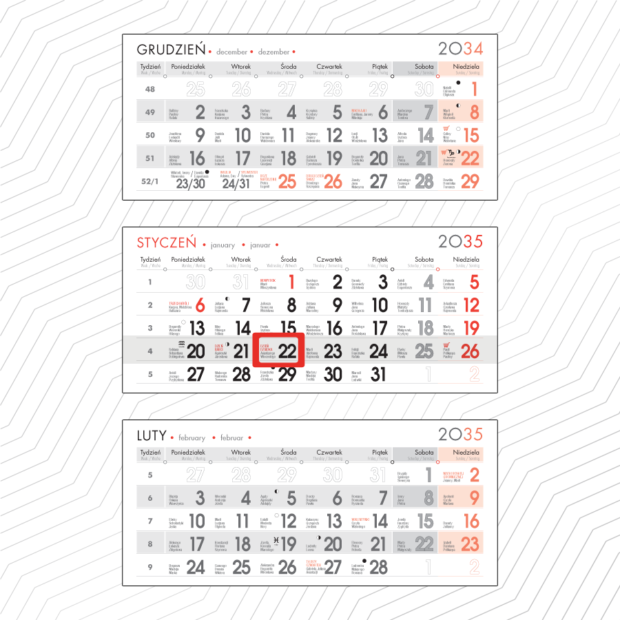 Kolorystyka: 13 kolorów (m. in. czerwony klasyczny)Sposób połączenia: gumka plus zszywkiWymiar (szerokość ścianki): 300 - 315 mmWszystkie oferowane przez nas okienka pasują do produkowanych przez nas kalendariów.